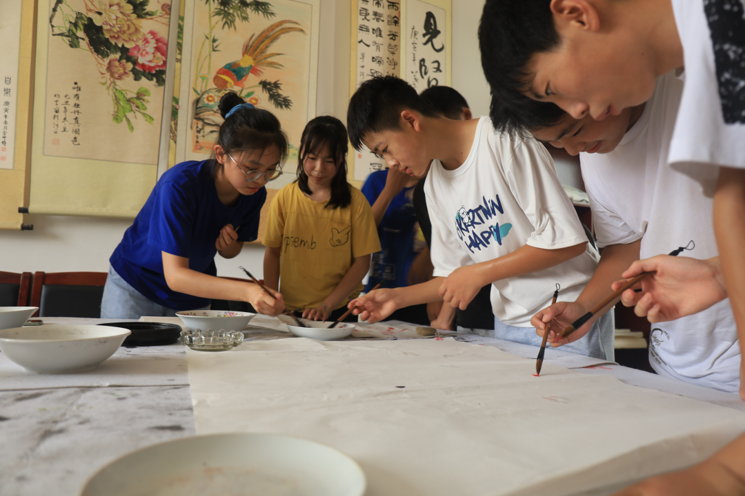 志愿者乔文锴和邢家林两人分别给孩子们带来了毛笔书法课和国画课,他们从最基础的如何拿笔、起笔等方面开始教起。多数孩子虽然都是从零起步,但经过一节课的学习,孩子们已经能够写出较为简单的毛笔字,画出一些简单的花卉。