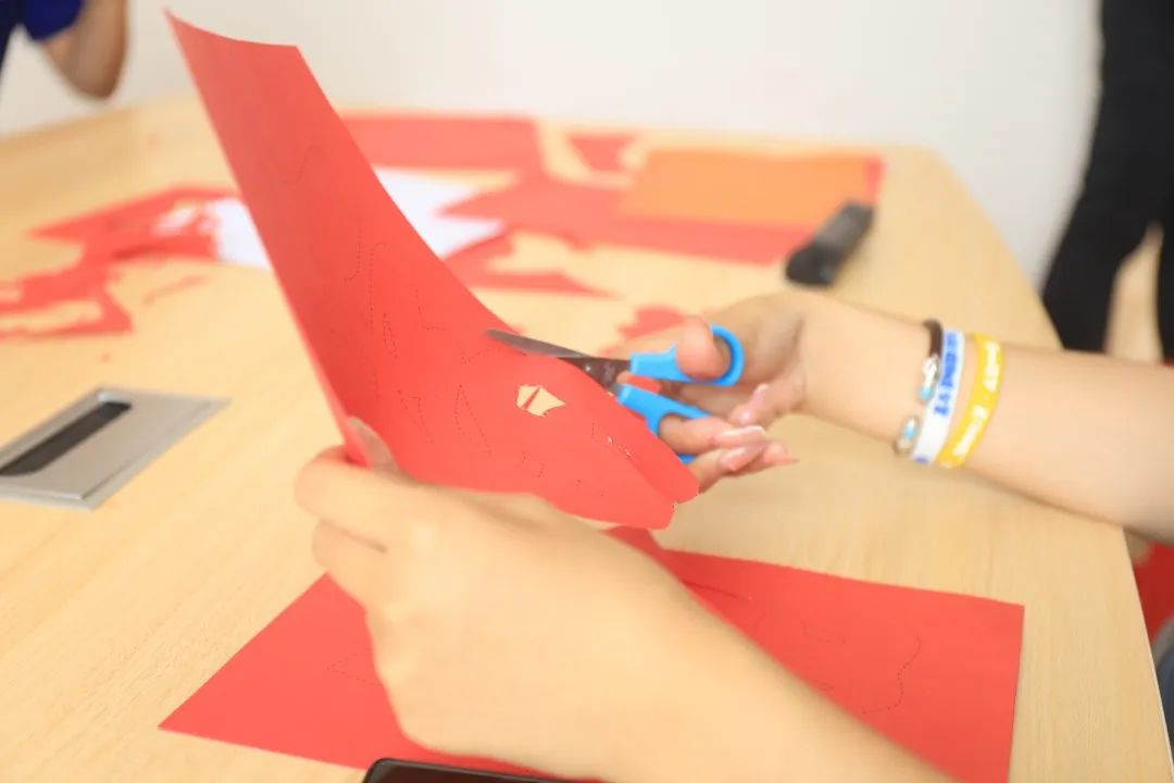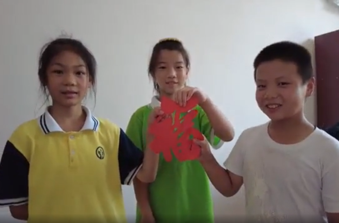 ▲孩子们展示剪好的福字