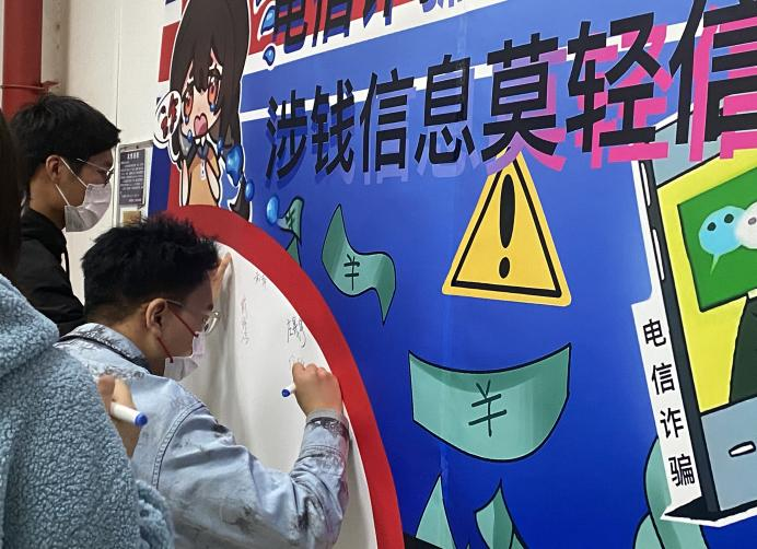 最后,所有参会同学依次在防诈宣传栏处郑重签下自己的姓名,将誓言牢记在心。让更多同学能够充分了解到防范电信诈骗的重要性。
