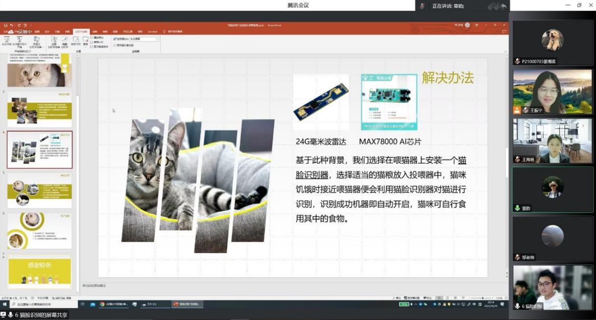 本次“创新杯”院赛共计13组同学入围答辩环节,其中科技发明制作类9组,哲学社会科学报告类4组。各小组围绕项目内容、项目特色、项目背景与现实意义、创新点及项目未来规划等多个方面展示团队研究成果。答辩结束后,评委老师结合选手的报告从项目的科学性、先进性、现实意义等方面提问并提出修改意见和建议。