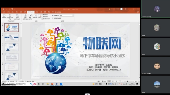 为培养学生创新精神和实践能力,引导和激励广大学生投身科技创新,10月23日下午,我院举行“创新杯”大学生课外学术科技作品竞赛选拔赛。院长张登银、副院长潘甦、副院长陆音、院党委副书记徐欣娅、网络工程系张载龙教授出席活动并担任评委,14支队伍经过角逐进入答辩环节,院科协全体成员、低年级同学观摩比赛。本次活动由院分团委书记姚真真主持,比赛通过腾讯会议线上举行。