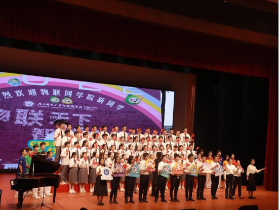 青春飞扬的歌声里,学子们传递着青春的活力,书写最璀璨的华章。“热爱永远不怕困难的你,跌到后会再站起来......”在创意环节,学院党委书记邓艳华、党委副书记徐欣娅、分团委书记姚真真、2022级辅导员吴孙玉笑以及2022级8位新生班主任悉数到场,“物联网班主任天团”挥舞着手中的国旗、迈着轻快的步伐走上舞台,和同学们一同唱响青春之声。一曲结束,师生齐声高喊“不忘初心,牢记使命,物联少年,勇往直前”,将现场氛围推向了最高潮,全场掌声雷动。