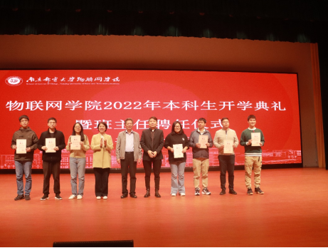 副院长潘甦宣读了《关于聘任刘家希等同志为南京邮电大学物联网学院2022级班主任的决定》。学院领导为2022级班主任颁发聘书。