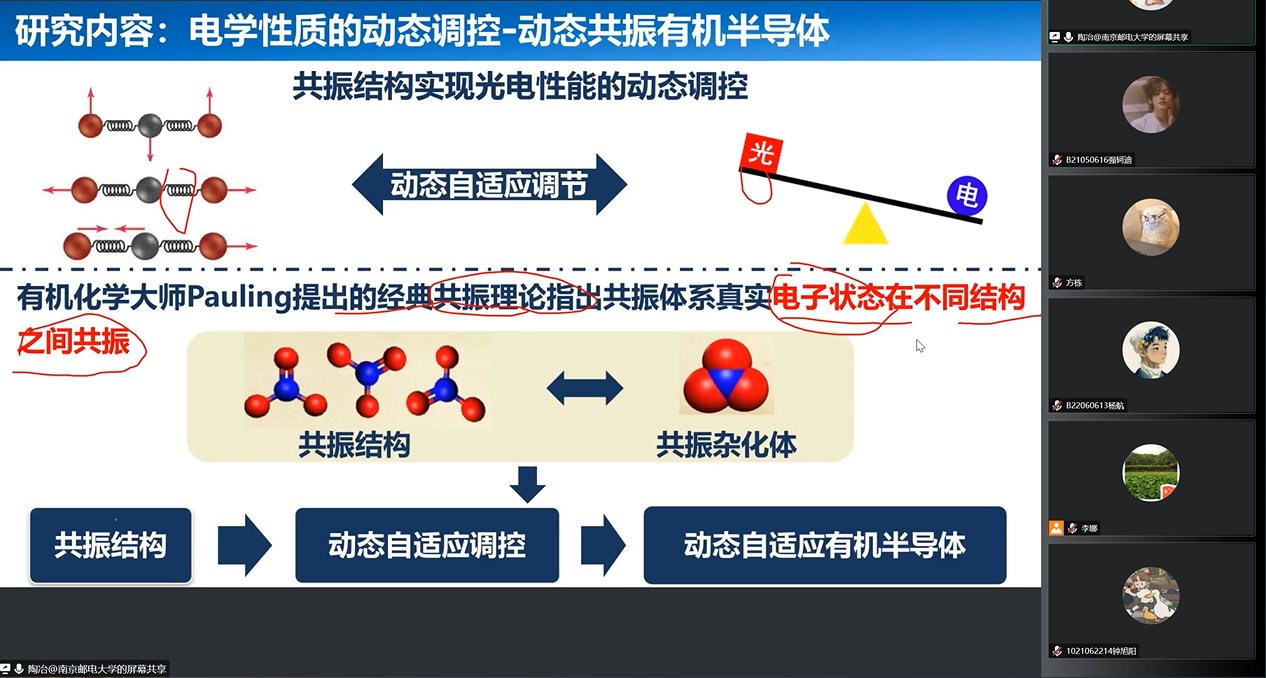陶冶教授以“动态响应有机光电材料”为题深入浅出的为大家介绍了动态响应有机光电材料的研究背景、研究原理、研究内容、研究瓶颈。