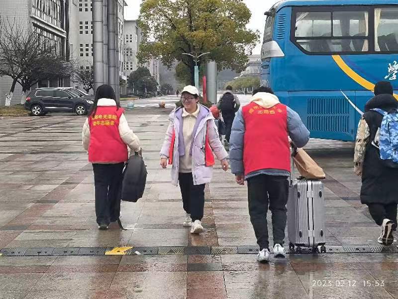 新春伊始,万象更新。2月11日-12日,我校迎来2023年春季学期返校学生,正值春雨绵绵的季节,为更好保障同学们顺利入校,减轻同学们的行李转运负担,电子与光学工程学院、柔性电子(未来技术)学院分团委牵头,以电光柔学院青协为抓手,辅导员责任制开展了“喜迎开学季,红马甲先行”志愿服务活动。本次活动分设门口和宿舍区接应岗负责帮助引导同学们乘坐学校接驳车。此外,以班级为单位,志愿队伍建在班上,更精准对口帮助同学们陆续入校。