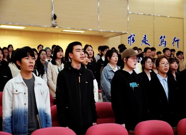 典礼伊始,全体起立,奏唱国歌。储成祥老师作开场致辞并强调:学院向来重视青马工程及学生骨干素养培育工作,希望菁英班成员能抓住此次学习机会,以学促行、以行践学、学以致用、知行合一,在实践中淬炼无悔青春,为实现中华民族伟大复兴而砥砺奋进。
