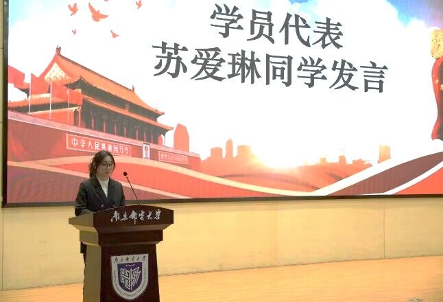 最后,学员代表苏爱琳同学上台发言。她从“青年学子,奋发向上”和“卓尔不群,志向高远”两个方面阐述自己对“菁英”二字的理解,号召学员们永怀奉献之心,行不懈奋斗之为,梦至青云而上,扬名于跬步之间。