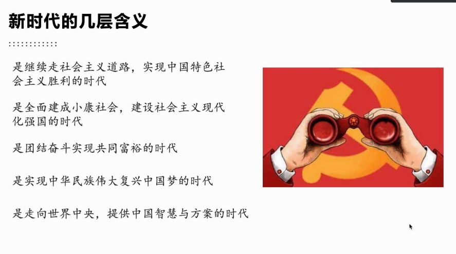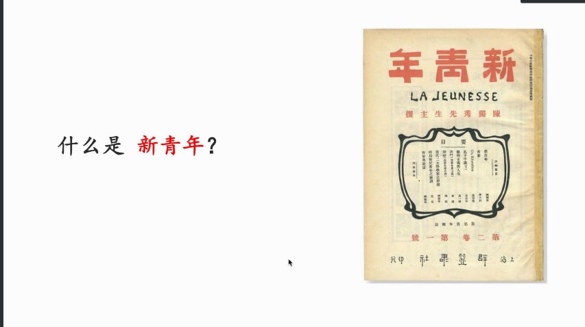 会议开始,黄佳陈老师以什么是新青年引入本期话题—“新青年 新时代 新征程——在党团引领下抒写青春”。并介绍了中国青年探索的历史,详细说明维新运动、新文化运动和十月革命等历史事件的重要意义,以陈延年同志为代表,介绍了历史上的优秀青年事迹,鼓励同学们积极进取抒写新时代的美好画卷。随后,讲述中国青年在救亡图存之际的组织化历程。紧接着,又为同学们介绍新时代的含义,指出时代的改变往往伴随着生产力和生产关系的重大调整。最后,黄佳陈老师以“少年中国说”结束了本次授课。