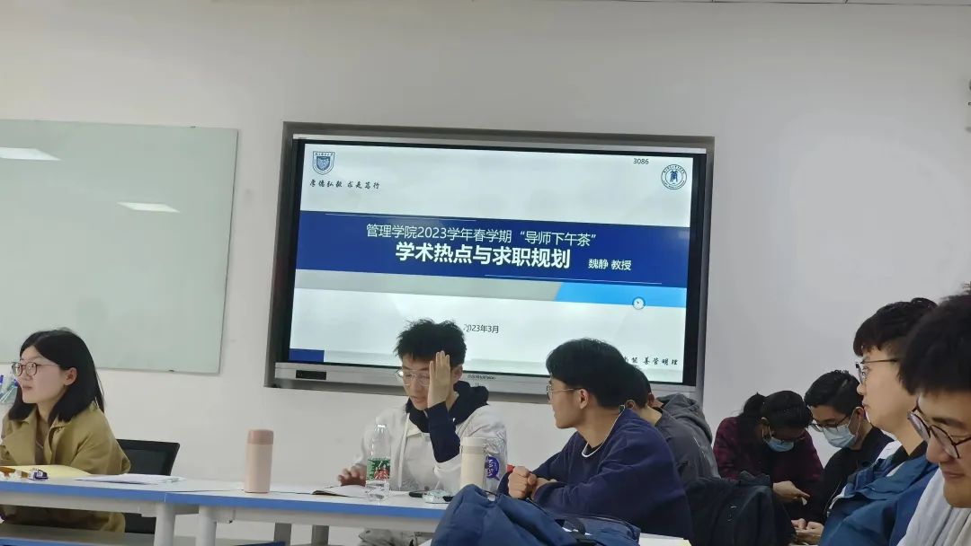 魏老师首先向研究生分享了自己读研、读博以及找工作的经历,并把自己从事经管教育行业多年的经验和个人看法与同学们进行分享。“重要的不是结果,我们更应该重视学习的过程。”座谈中魏老师“金句”频出,与研究生们亲切互动,大家纷纷举手提问、畅所欲言,现场气氛十分热烈。