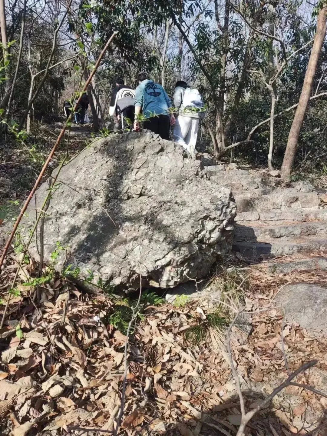 走过梧桐路,大家决定直奔野路,徜徉花海。一条被游人踩出的野道横在眼前,蜿蜒出绿野仙踪的奇妙感。下一秒,仿佛就要窜出来一只兔子,带你闯进童话世界里。爬山的过程虽然欢声笑语不断,却也充满着挑战。大家团结互助,别有一番趣味。