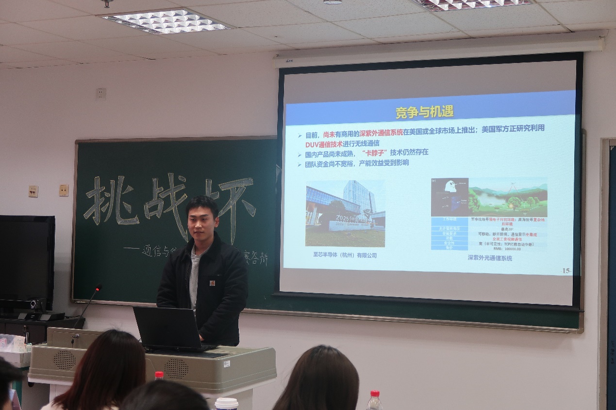为深入贯彻落实党的二十大精神,进一步引导和鼓励青年学生培养科学态度和创新精神,促进我院大学生课外学术科技活动蓬勃发展,营造学院浓厚的科技科研创新氛围,3月22、23日下午,校2023年“挑战杯”大学生创业计划竞赛院赛答辩会在教4-325成功举办。我院党委副书记王晶,党委委员、副院长赵海涛,院长助理唐贵进,信息与通信工程实验教学中心戴海鸿,学院电子设计竞赛资深指导老师曾桂根、林建中,学院分团委书记丁杨担任本次院赛答辩评委,会议特邀校团委副书记李伟、彭春雪担任嘉宾评委。